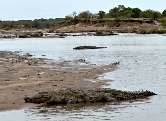 Even the successful river crossings are crazy as it’s every beast for oneself getting across. With the two successful crossings I saw, there were no crocodiles in the water at the time but once most of the herd had crossed, I saw at least three different wildebeest moms come back towards the river to look for their calves which they lost during the crossing. Since there were no crocodiles, I assume that all made it across the river but because the crossings are so chaotic, the moms and calves must have gotten separated so the calves must be on the other side somewhere. I felt really bad for these wildebeest moms but as my safari guide Leo mentioned, that’s nature.