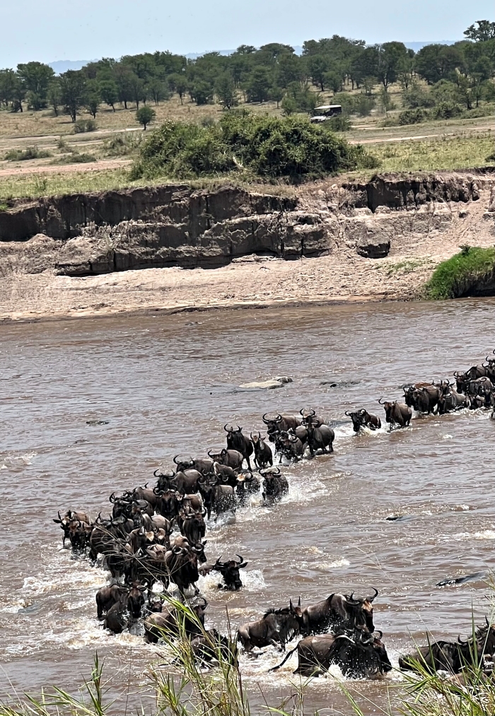 Meanwhile there are sections of the river that are quite shallow even with large rocks that can be used as stepping stones that they don’t bother using to cross. I saw several of such shallower river sections that would have been much easier for them to cross. This made me conclude that wildebeest are not very intelligent animals.